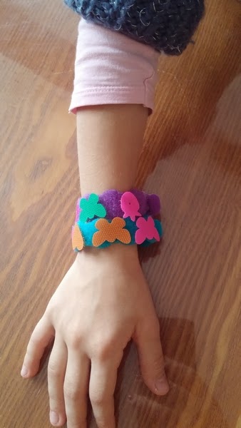 Les bracelets sont en velcro, il suffit donc de disposer les décos pour des bracelets hauts en couleur !