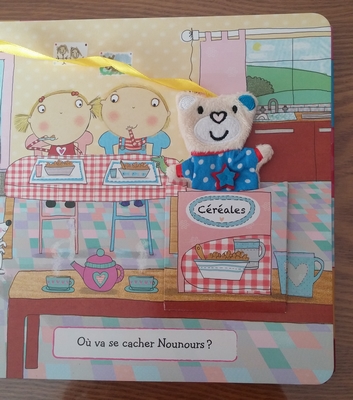 Il s'agit d'une jolie histoire, accompagnée d'un petit nounours tout doux, qui peut se glisser .... Ou plutôt se cacher ... Tout au long du livre.