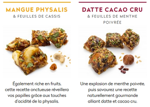 C’est une création culinaire saine et innovante, réalisée à partir de fruits séchés, fruits à coque et herbes aromatiques.