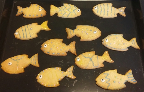 Nous avons attendu le 1er Avril pour tester notre kit et pour cause .... Nous avions comme mission de créer de jolis sablés en forme de poissons !Chipette et Namour ont mis leur équipement avec beaucoup de fierté ... Allez hop, on se retrousse les manches et on commence !