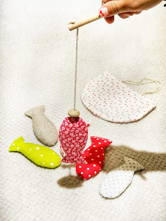 Il s'agit d'un jeu de " pêche à la ligne ", en tissu et aimanté, que les enfants ont adoré cet été.