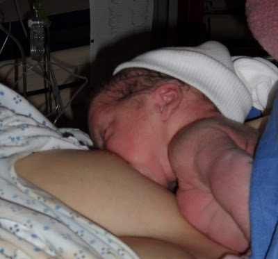 Grands yeux ouverts, sans un cri, elle est posée sur moi et déjà au sein !!! A cet instant, le monde aurait pu s'écrouler ... Je n'entendais plus rien, je ne voyais que ses grands yeux plongés dans les miens et son visage si serein !! Qu'elle est belle !! On se regarde avec son papa, les yeux tout mouillés de bonheur ....